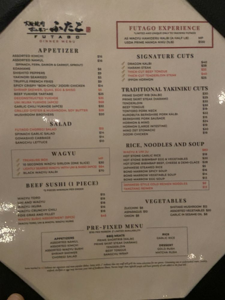 Yakiniku Futago, a Japanese steakhouse and BBQ located in New York City, offers a wide range of menu options. Highly recommended dishes include the Wagyu beef, cold noodles, and the Memorial Day Special Platter. The restaurant provides excellent service, knowledgeable staff who guide you through the menu, and a pleasant atmosphere. Customers rave about the quality of the meats, unique dishes like the treasure box of rice, uni, and A5 wagyu, and the overall dining experience. With options for lunch and dinner, Yakiniku Futago stands out for its high-quality ingredients, trendy ambiance, and excellent customer service. Don't miss out on the opportunity to try some of the best Japanese BBQ in NYC at Yakiniku Futago.